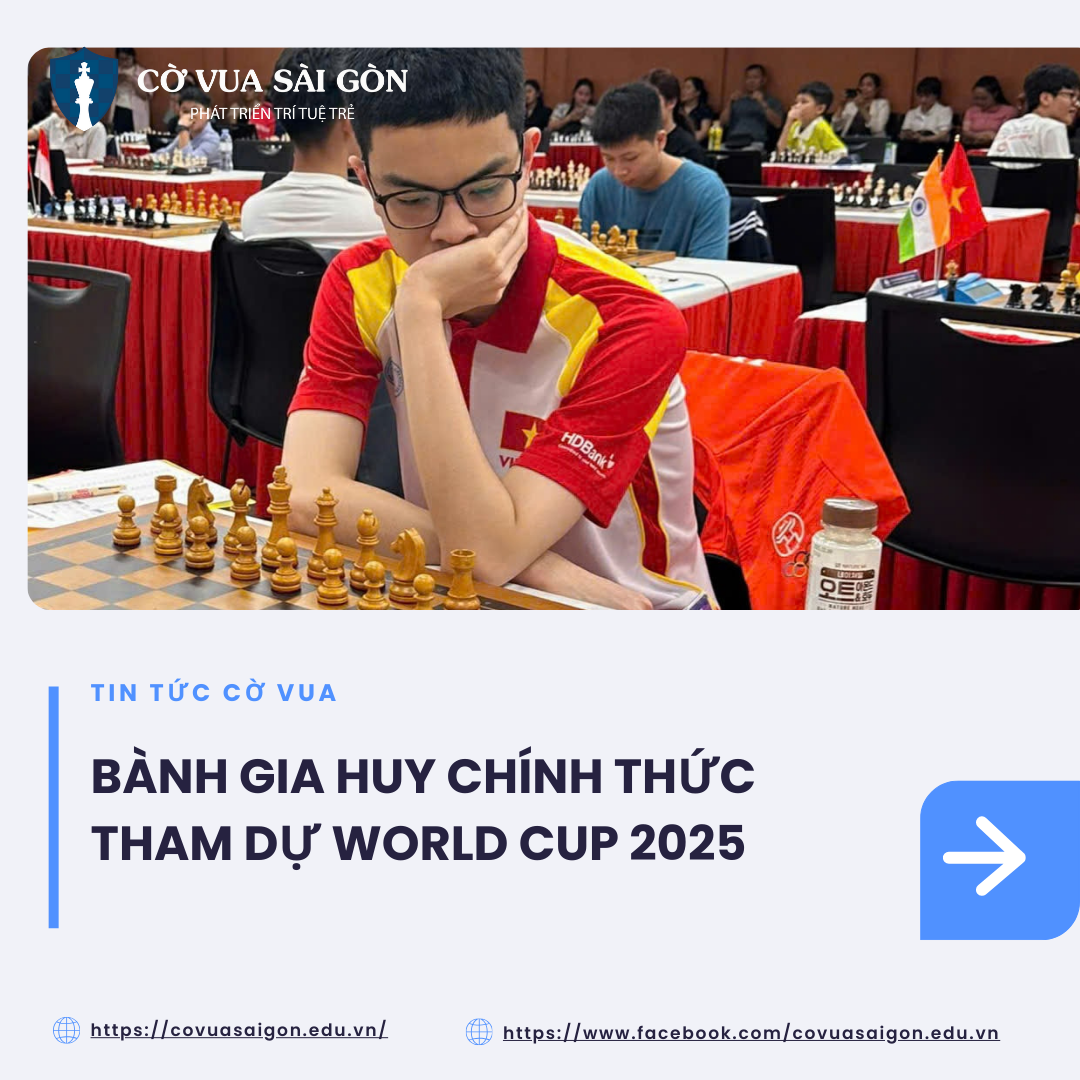 Kỳ thủ trẻ Bành Gia Huy (16 tuổi, Hà Nội) sẽ cùng với Đại kiện tướng Lê Quang Liêm đại diện cho cờ vua Việt Nam tham dự World Cup Cờ vua 2025 tại Goa, Ấn Độ, từ ngày 31/10 …