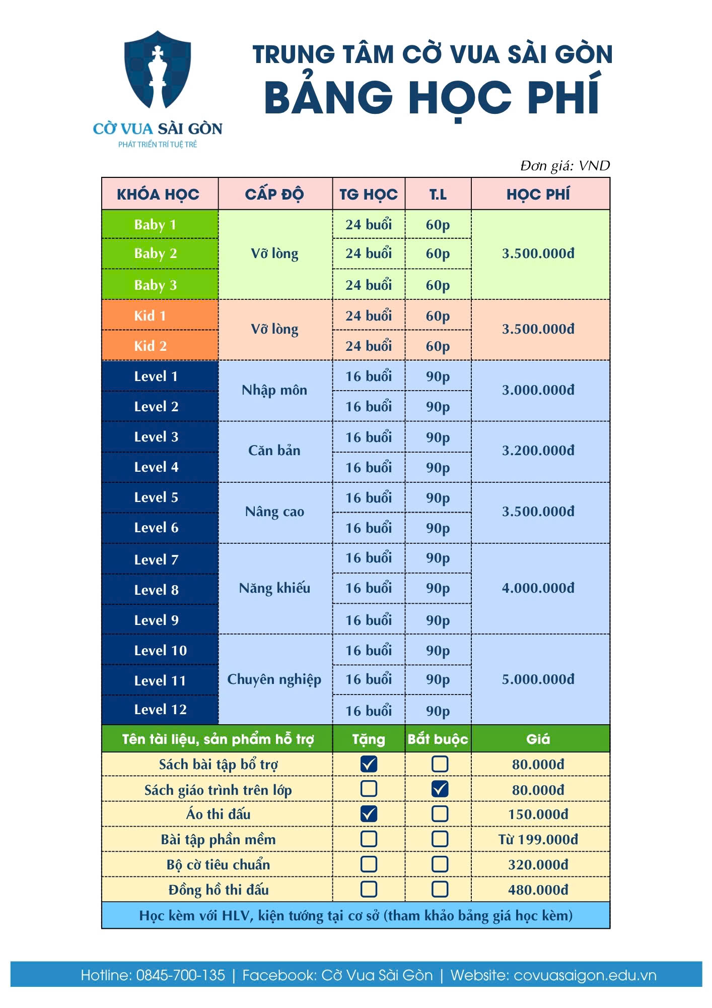 THÔNG TIN LỚP CỜ CƠ SỞ VINHOMES (BÌNH THẠNH)