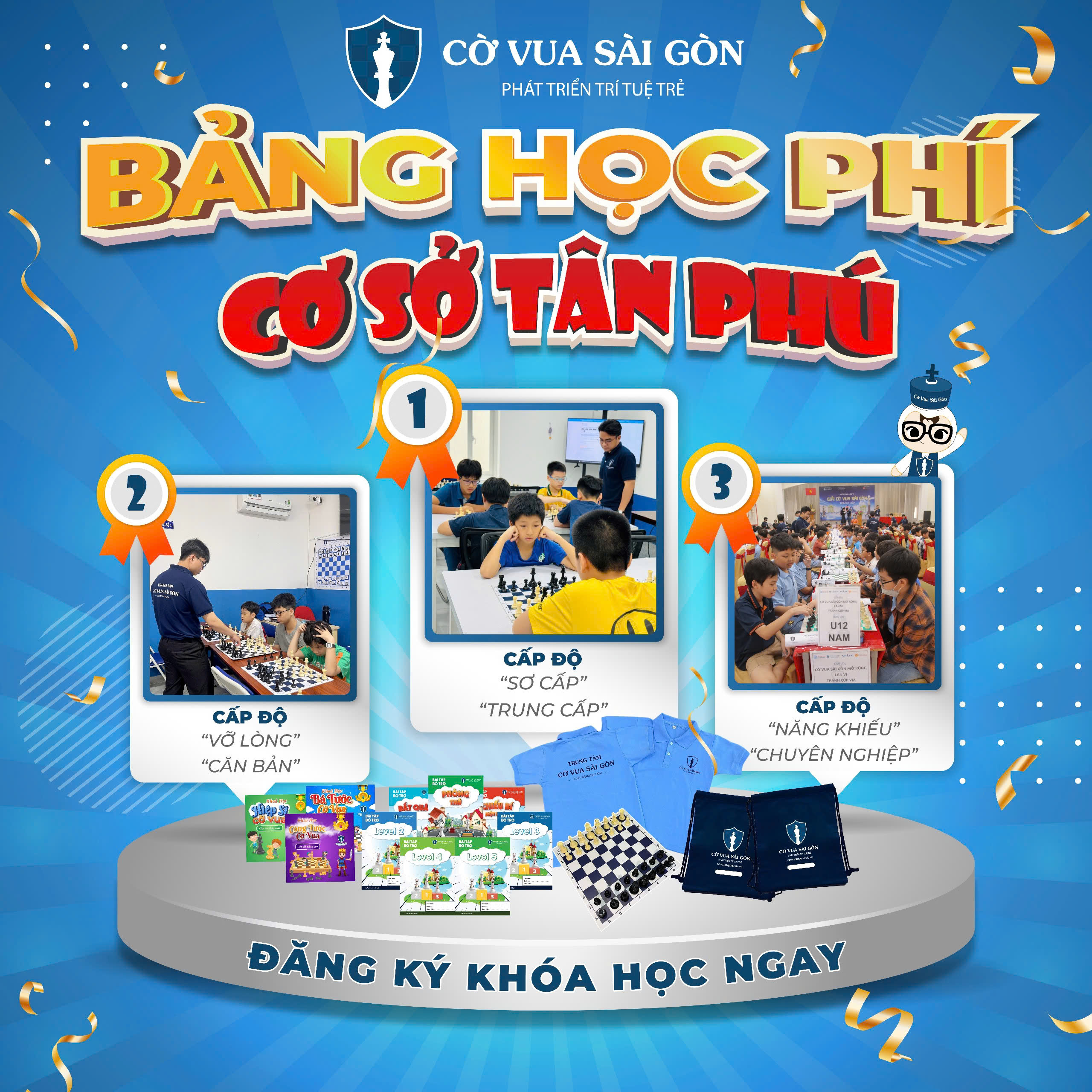 Học phí cờ vua thường phụ thuộc vào nhiều yếu tố, bao gồm địa điểm, trình độ giảng viên, và tùy từng Level tương ứng với trình độ của học viên Học phí của các khóa học được chia theo …