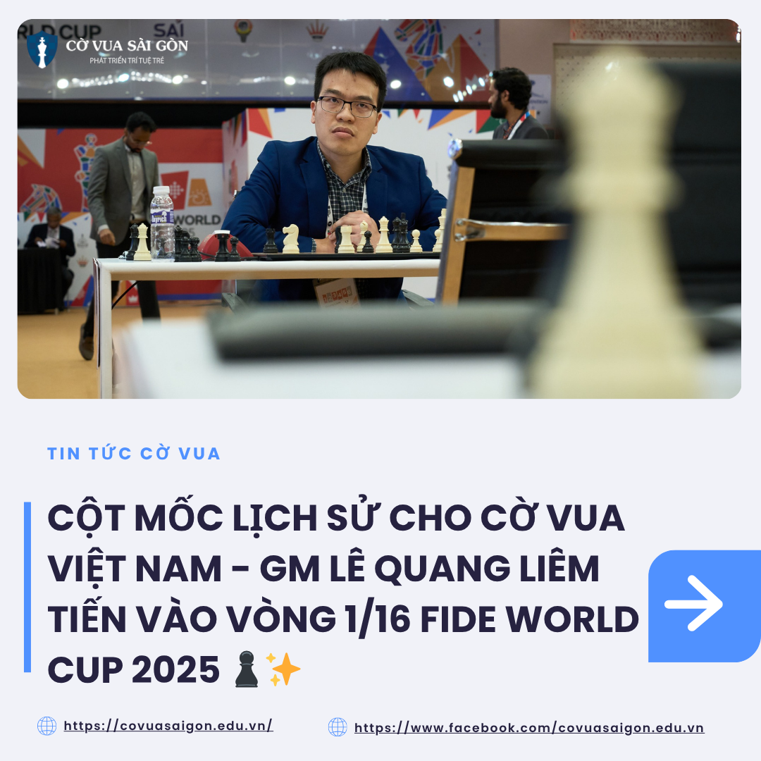 Đây cũng là lần đ𝐚̂̀𝐮 𝐭𝐢𝐞̂𝐧 𝐭𝐫𝐨𝐧𝐠 𝐥𝐢̣𝐜𝐡 𝐬𝐮̛̉, lá cờ Việt Nam được góp mặt tại 𝐯𝐨̀𝐧𝐠 𝟏/𝟏𝟔 𝐅𝐈𝐃𝐄 𝐖𝐨𝐫𝐥𝐝 𝐂𝐮𝐩 – một cột mốc đáng tự hào cho cờ vua Việt Nam trên đấu trường thế giới! 🌍 covuasaigon.edu.vn