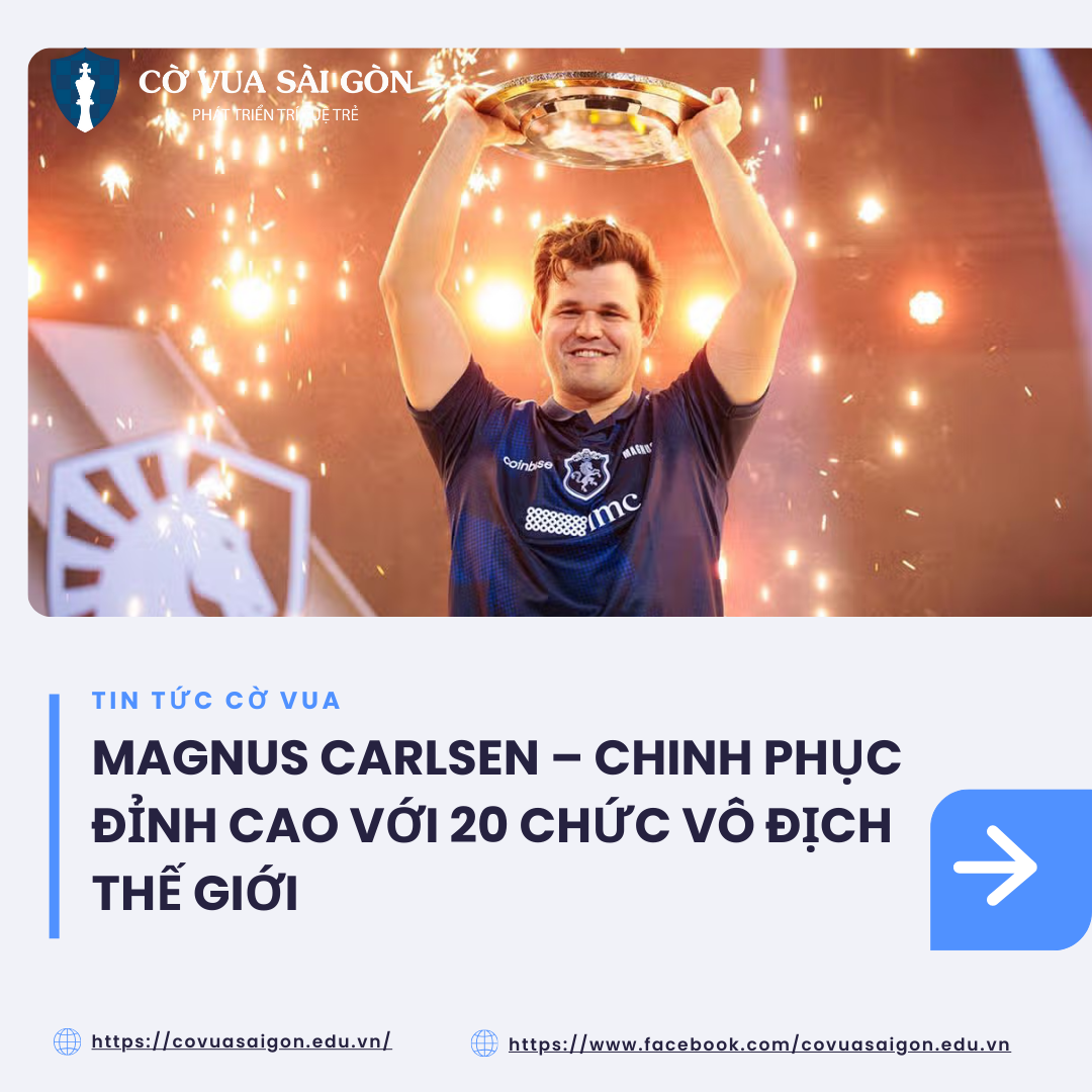 Chiến thắng tại eSports World Cup 2025 là cái mốc mới, chức vô địch thế giới thứ 20 đầy dấu ấn trong sự nghiệp hiển hách của Magnus Carlsen. covuasaigon.edu.vn