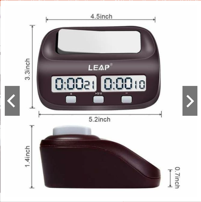 Thông tin chi tiết đồng hồ thi đấu cờ vua quốc tế.